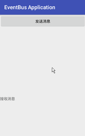 示例展示了两个fragment之间如何通过EventBus通信。在fragment1中点击按钮发送事件(说成消息也可以),fragment2接收事件,并展示事件内容。效果如下: